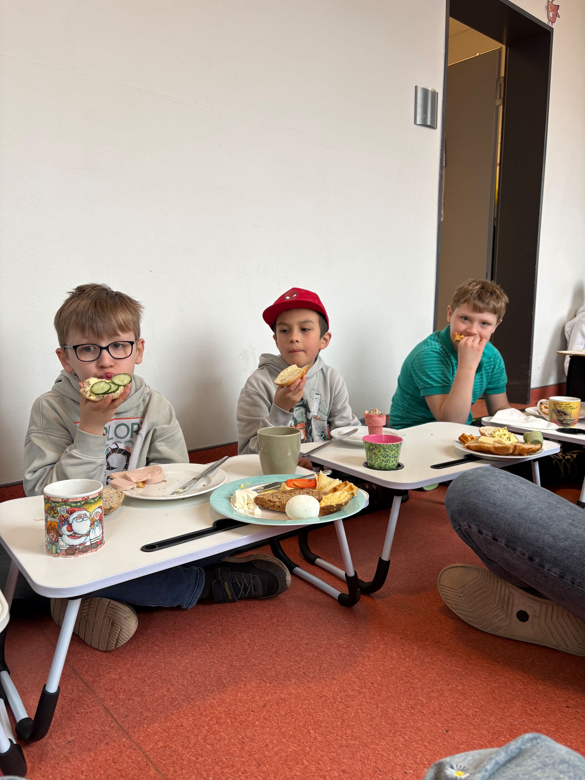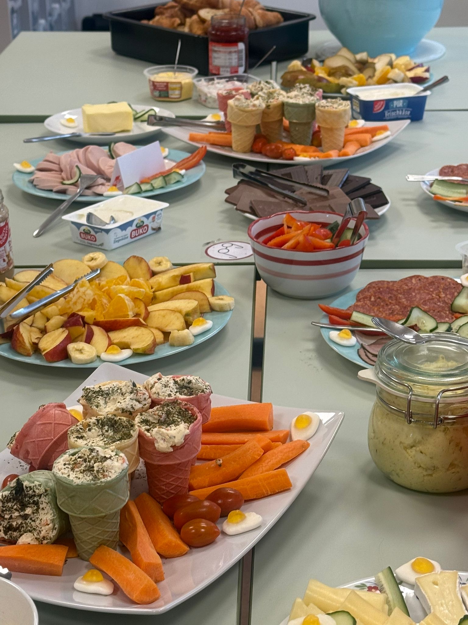 Auch das große gemeinsame Frühstück hat an unserer Schule wieder traditionell kurz vor den Ferien stattgefunden. In allen Klassen wurde gemeinsam gegessen, gelacht und eine gemütliche Zeit miteinander verbracht. Die Kinder brachten viele leckere Speisen mit, sodass ein buntes und vielfältiges Buffet entstand. In entspannter Atmosphäre konnten sich alle noch einmal austauschen und die letzten Schultage genießen, bevor es in die wohlverdienten Ferien ging. Das gemeinsame Frühstück ist jedes Jahr ein besonderes Highlight im Schulalltag und stärkt das Miteinander in den Klassen.