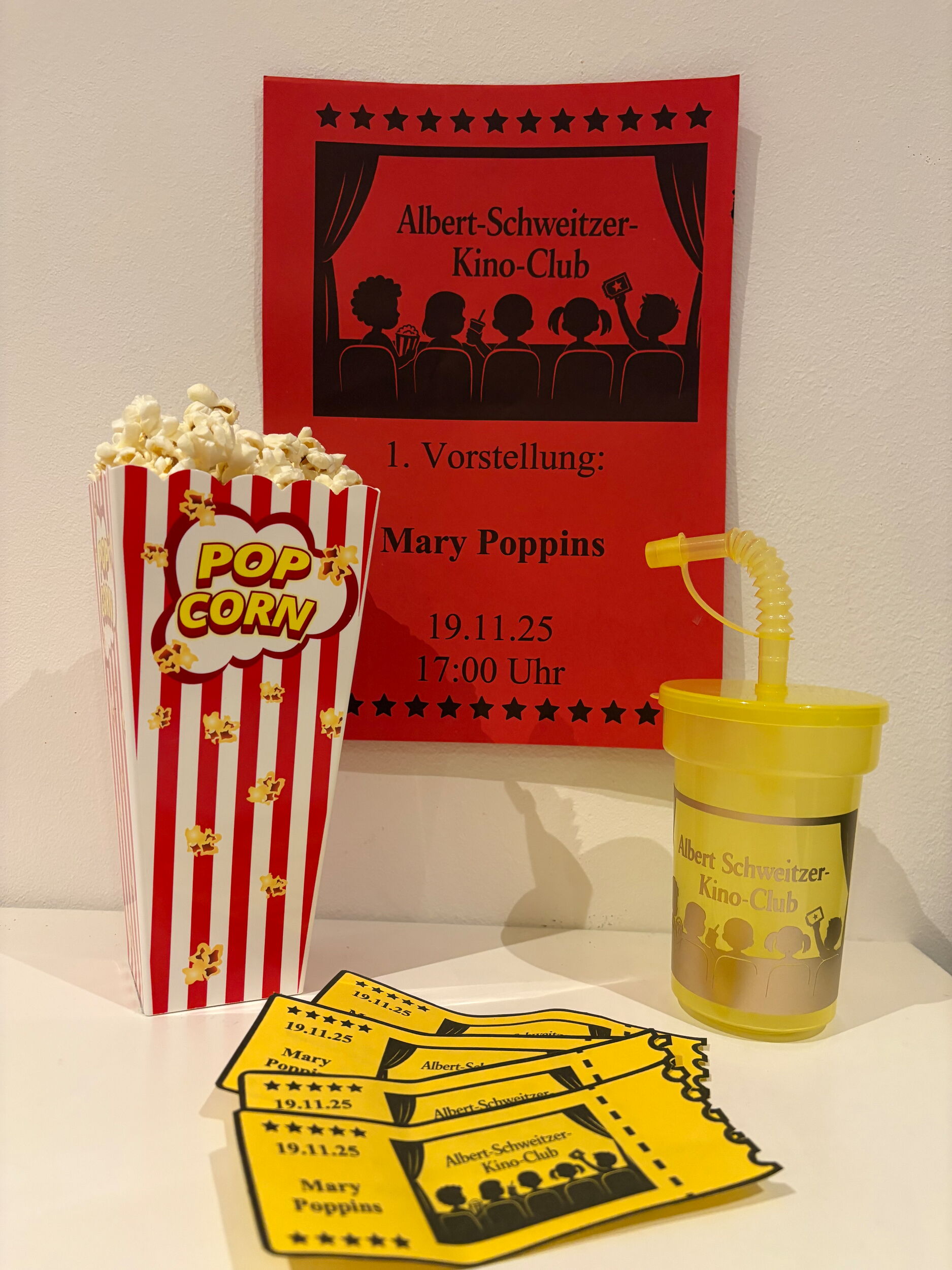 Der neu gegründete Kino-Club feierte seine gelungene Premiere. Schülerinnen und Schüler konnten sich für das erste Treffen anmelden und gemeinsam in die Themenreihe Musical starten. Den Auftakt machte der Film „Mary Poppins“. Mit Popcorn und leckeren Getränken war für das passende Kinofeeling gesorgt, und die entspannte, fröhliche Stimmung machte den Nachmittag zu einem besonderen Erlebnis. Die Schülerinnen und Schüler besprachen gemeinsam Lieblingslieder des Films und die lustigsten Stellen. Aber auch über die ernsten Themen des Films wurde sich ausgetauscht. Der Kino-Club freut sich schon auf viele weitere filmreife Treffen!