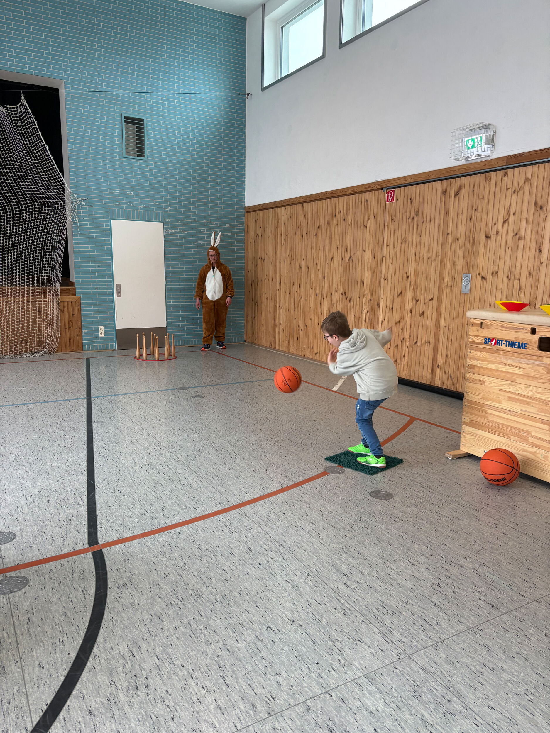 Bei der Frühlings-Olympiade ging es wild her! An verschiedenen Stationen traten die Klassen im Wettkampf gegeneinander an. Von motivierender Musik begleitet, zeigten alle Schülerinnen und Schüler was sie draufhaben! Angefeuert wurden sie dabei nicht nur vom Rest ihrer Klassen, sondern auch vom "Osterhasen". Herzlichen Glückwunsch an die Gewinnerklasse!